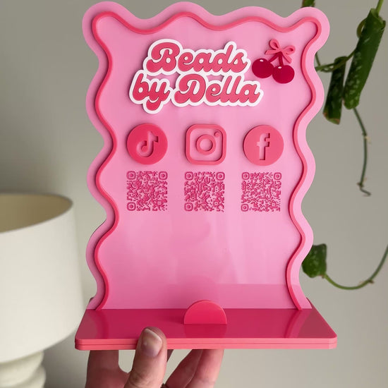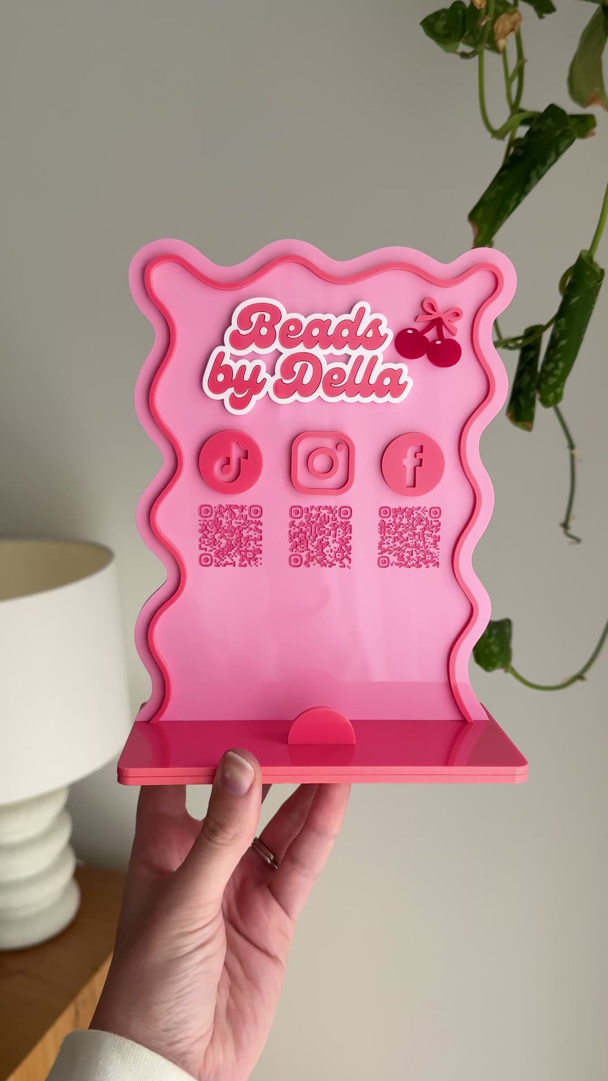 Our custom acrylic QR business card stands are the perfect branded option for your counter, collective store shelf, pop-up or market stall!