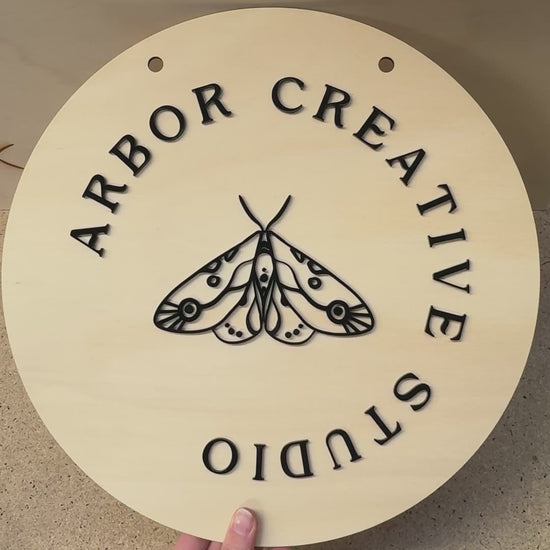 Our beautiful large custom acrylic business logo signs, but DOUBLE SIDED! Perfect for for displaying at your studios, shopfronts, offices, market stalls and event displays.