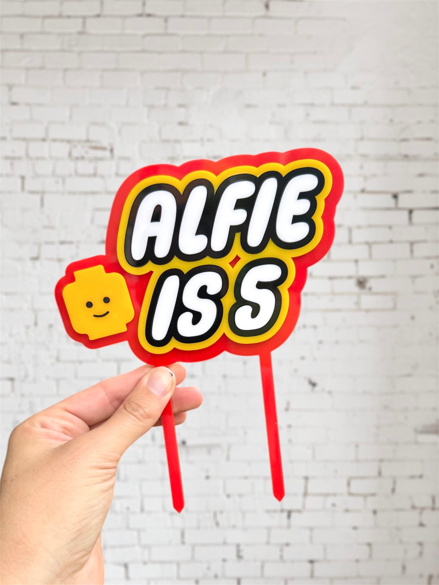 For the little Lego fans! Designed in-house, fully personalised and created by hand using high quality 3mm gloss acrylic.